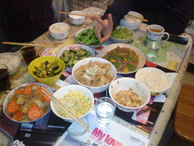 周日,近段时间,第一次9点起床,还是在大食代解决中午的温饱,为那个Itouch帖了膜,然后值得一提的杯具就是厨房的门无法打开,房东费了好大的劲敲开玻璃,撬掉门锁……四点开始准备晚饭,牛肉,很久都没吃了,费了一番功夫,饭菜就位,即将享用。