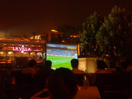 29日,晚上11点,我们还在意大利风情街喝酒,看球,这样的夜晚,这样的微风,这样的美酒,这样的美景……仿佛自己就置身于遥远的意大利,建筑和雕塑虽然古老但有情调,我说,北京的建筑虽然雄伟,但“杀伤力”很大,让你退避三舍,而天津的建筑则显得很亲切,少了一些权威,多了一分柔情。
